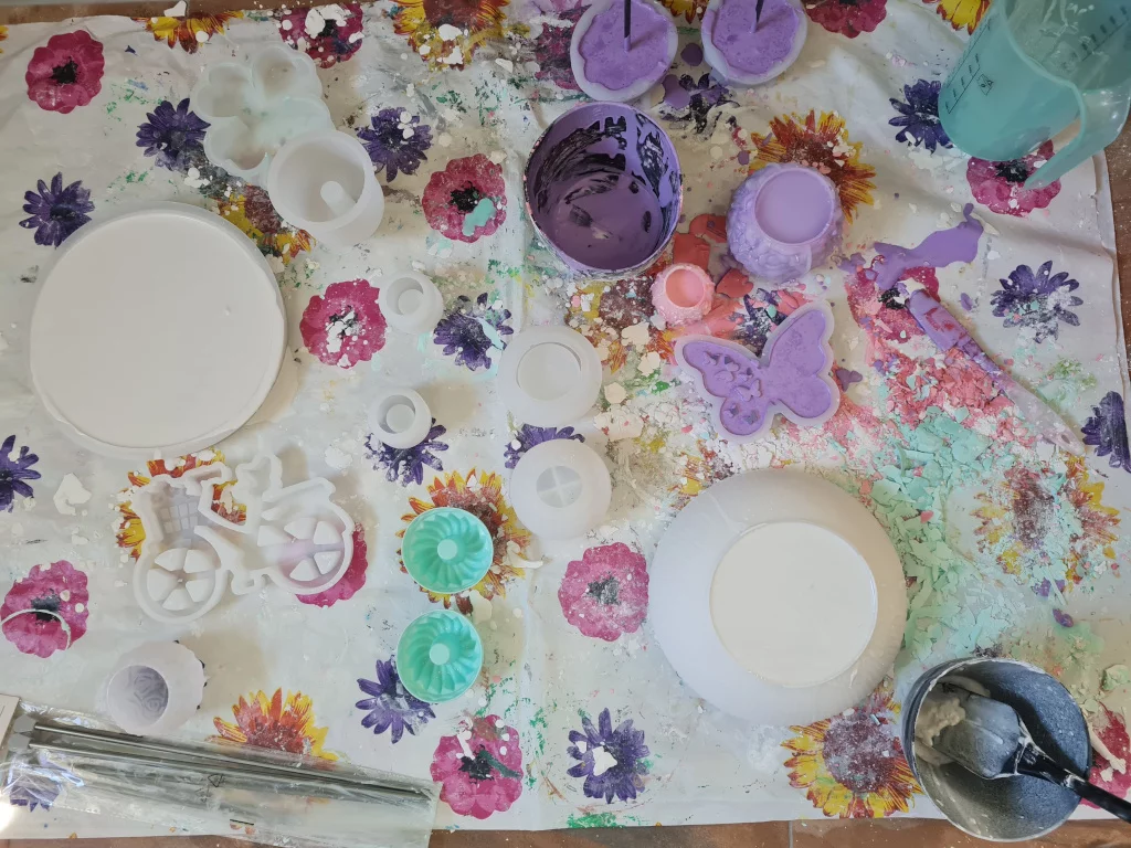 Zum Gießen wird eine spezielle Gießmasse, eine Gießform und etwas Werkzeug benötigt.
