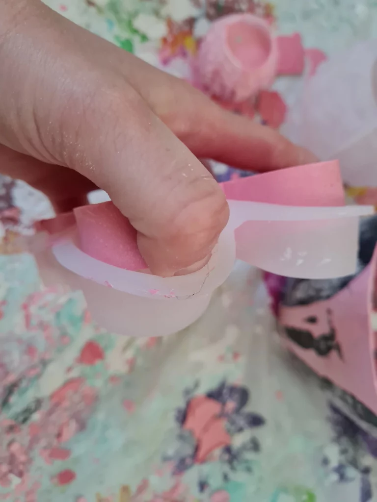 Nach der vorgegebenen Trocknungszeit wird das Stück äußerst vorsichtig aus der Form gelöst. Vor der Weiterverarbeitung empfehle ich eine Trocknungszeit von ca. einer Woche. Erst dann sollten Unebenheiten und Grate vorsichtig abgeschliffen werden.